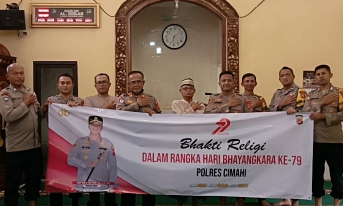 BANDUNG, Mbinews – Sambut Hari Bhayangkara ke-79, Polsek Cimahi lakukan sejumlah kegiatan bakti sosial di wilayah binaan salahsatunya dengan melakukan bersih-bersih tempat ibadah di Mesjid Al-Ishlah di Jalan Encep Kartawiria, Kel. Citeureup, Kecamatan Cimahi Utara dan menyerahkan bantuan kepada marbot.