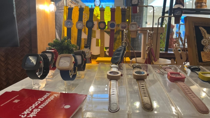 Beberapa produk unggulan yang dipamerkan antara lain jam tangan kayu dan case ponsel dengan desain stylish dan berkelanjutan.