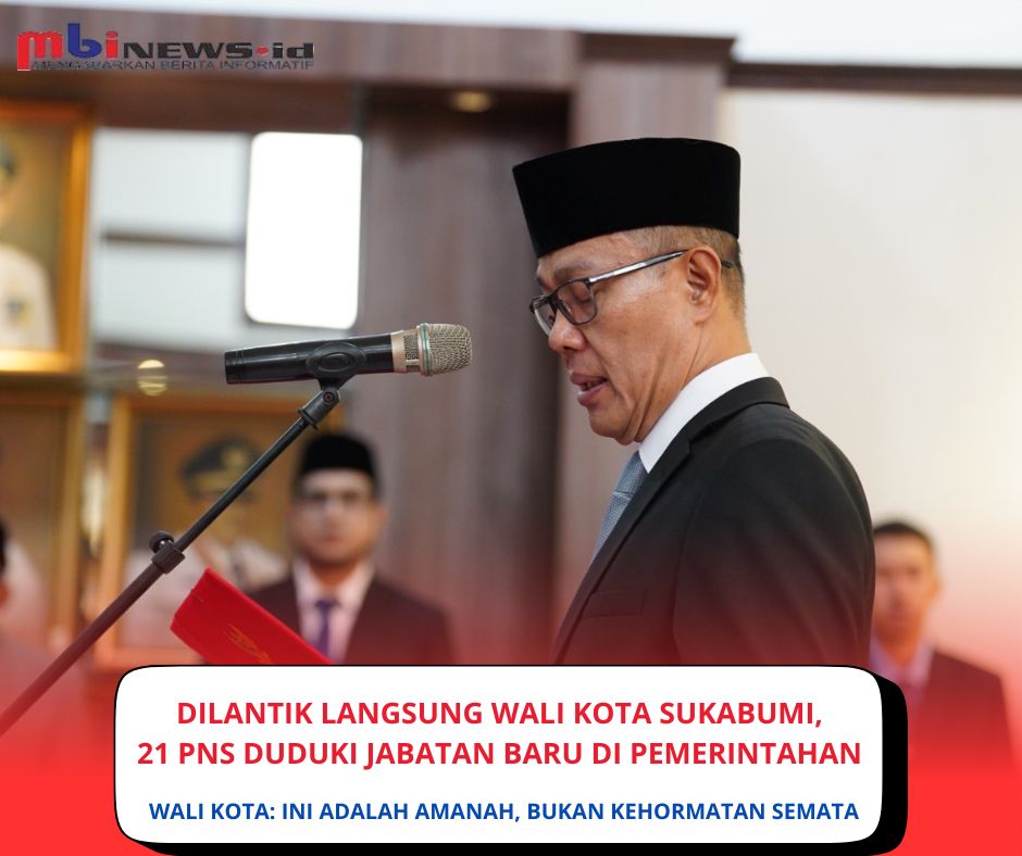 SUKABUMI,Mbinews.id – Pemerintah Kota (Pemkot) Sukabumi, kembali menegaskan komitmennya terhadap tata kelola pemerintahan yang lebih progresif dan berintegritas. Dalam upaya memperkuat struktur birokrasi yang adaptif dan melayani, Wali Kota Sukabumi, Ayep Zaki, secara resmi melantik 21 Pegawai Negeri Sipil (PNS) untuk mengisi Jabatan Pimpinan Tinggi Pratama dan Administrator, di Balai Kota Sukabumi. Kamis, (21/08/2025).