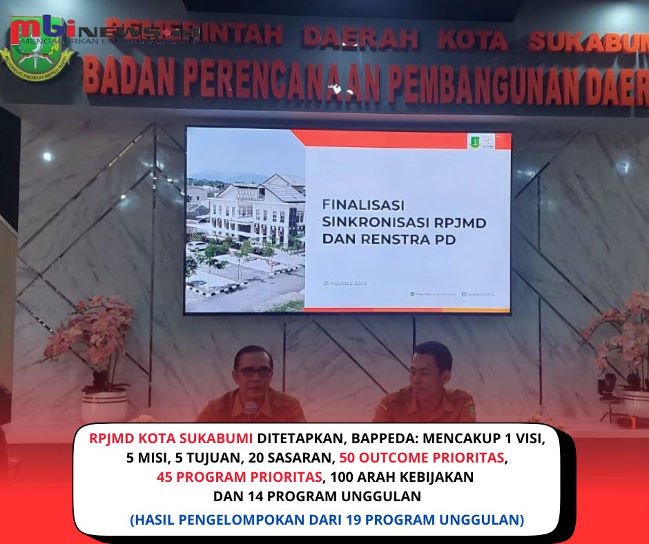 SUKABUMI, Mbinews.id – Setelah melalui rangkaian tahapan yang panjang, Rencana Pembangunan Jangka Menengah Daerah (RPJMD) Kota Sukabumi akhirnya resmi ditetapkan. Penetapan tersebut tertuang dalam Peraturan Daerah Nomor 5 Tahun 2025 tentang RPJMD Tahun 2025–2029, pada 20 Agustus 2025.