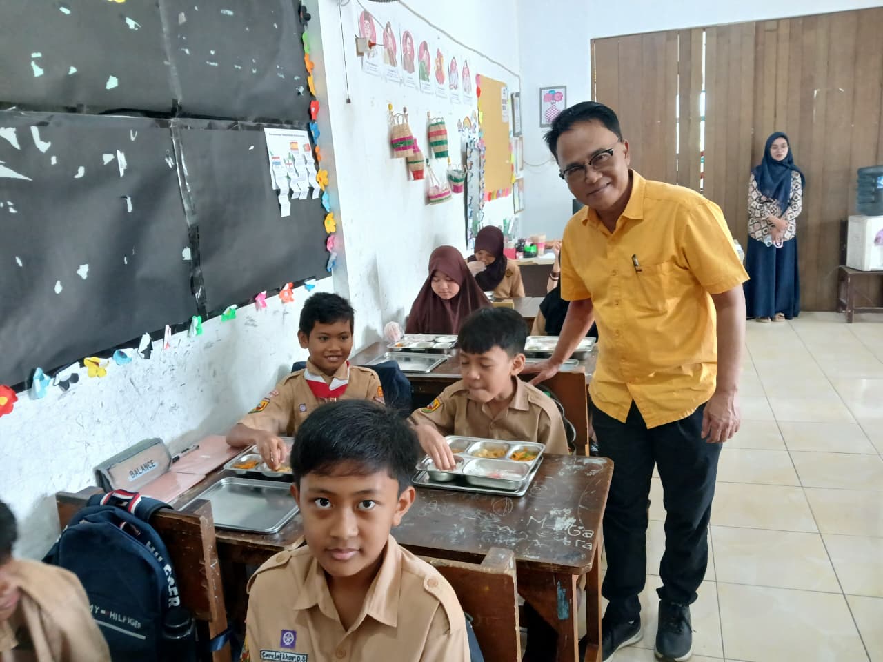 “Guru-guru tidak hanya membagikan dan melihat anak-anak makan, tapi diberi jatah juga,” selorohnya.