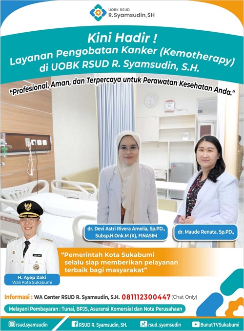“Semoga ikhtiar penambahan layanan kemoterapi semakin memberikan manfaat kepada masyarakat pengguna jasa layanan kesehatan RSUD R. Syamsudin, S.H. Kota Sukabumi,”pungkasnya.ardan/wan/mbi.