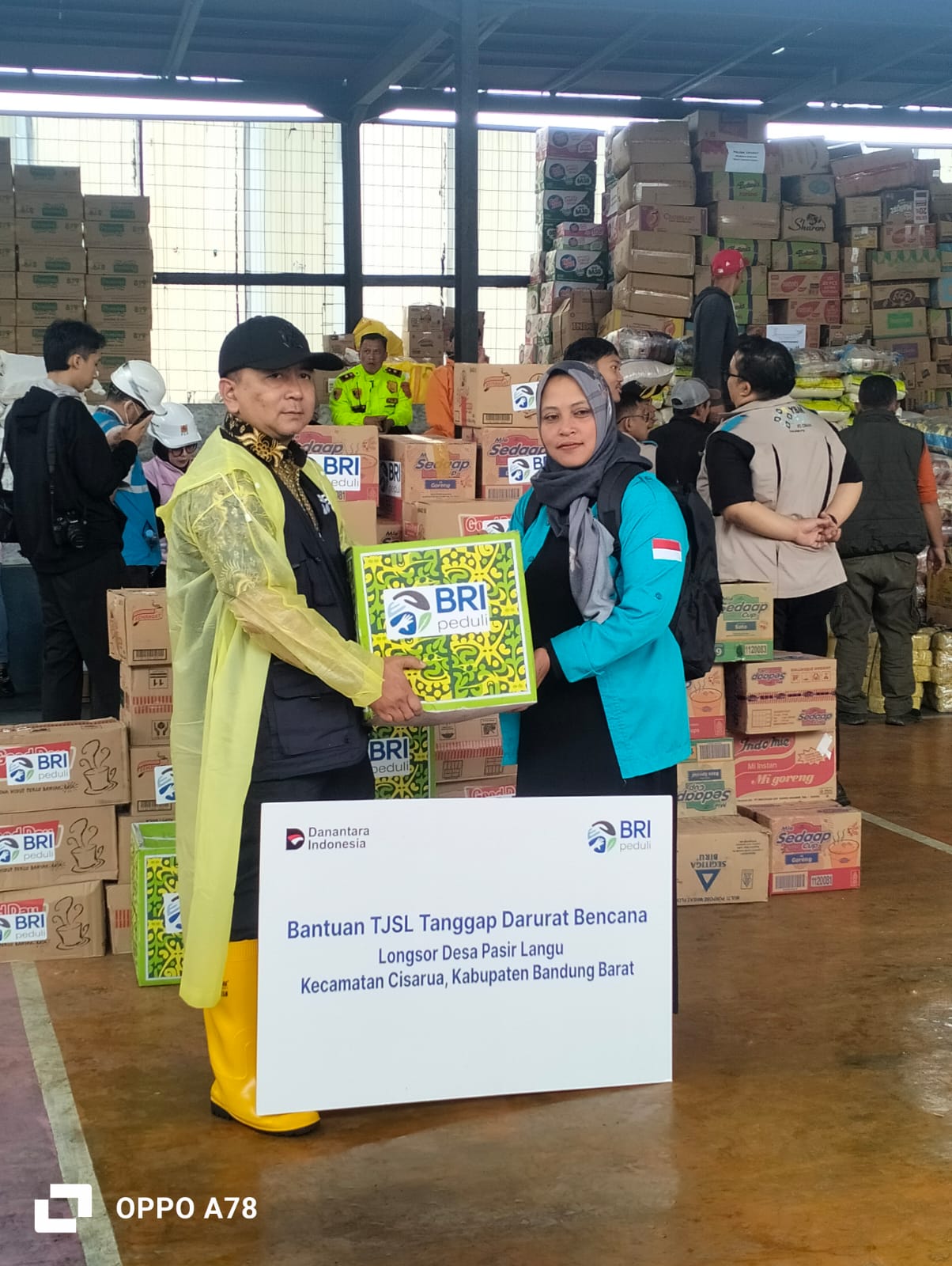 Bantuan diserahkan secara simbolis oleh perwakilan pekerja BRI BO Bandung Setiabudi kepada perangkat Desa Pasirlangu di gudang logistik posko bencana longsor Cisarua, Kampung Pasirlangu. Bantuan yang disalurkan berupa paket sembako senilai Rp.50.000.000 guna membantu pemenuhan kebutuhan dasar masyarakat terdampak.